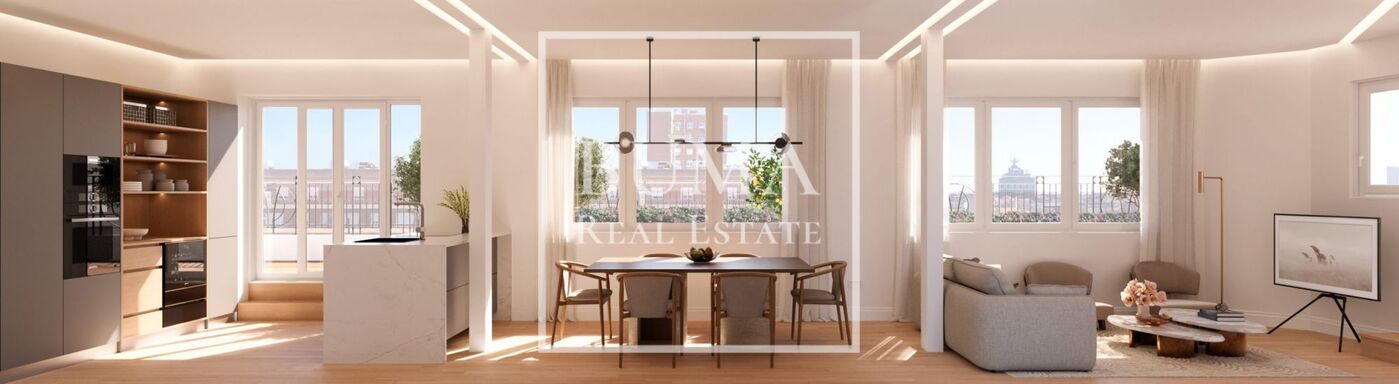 La vivienda cuenta con 126 m² construidos y una espectacular terraza privada de 65 m² con orientación sur, lo que aporta una extraordinaria luminosidad natural durante todo el día. La propiedad ha sido completamente reformada con un estilo contemporáneo, manteniendo el carácter elegante propio del barrio.