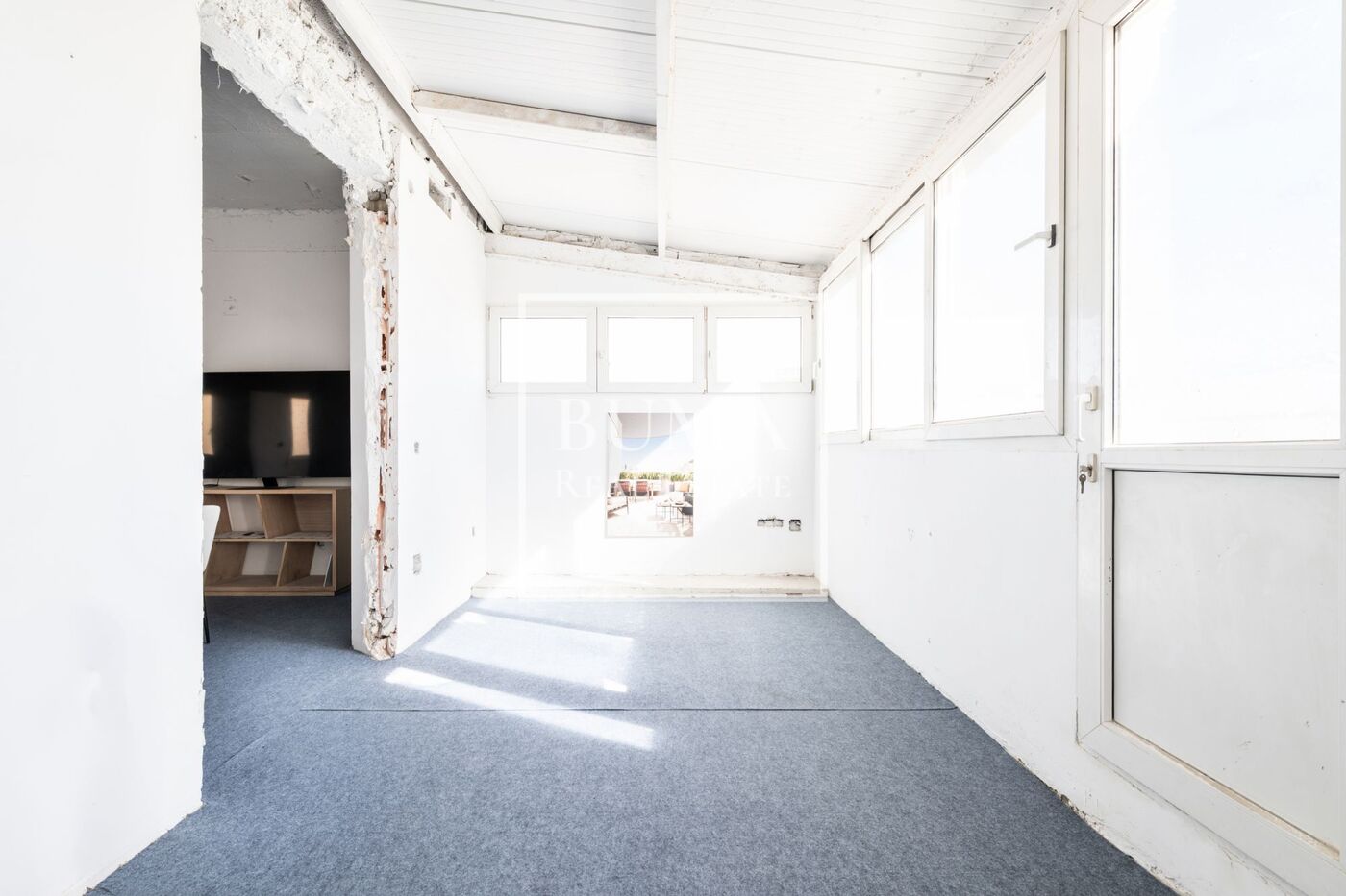Situado en la séptima planta de una finca clásica de los años 20, el ático destaca por su elegante arquitectura, techos altos de 3 metros y orientación sur, que proporciona luminosidad excepcional y vistas despejadas y privadas. La vivienda, de 193 m² contruidos con 16 m² de terraza, dispone de tres dormitorios con baño en suite, cocina, dos terrazas cubiertas recuperables, trastero, portero físico y ascensor de jaula. La propiedad ofrece distintas posibilidades de reformar de 3 dormitoiros en suite y una gran zona de recibo completamente exterior tanto a la terraza como directamente a la calle.