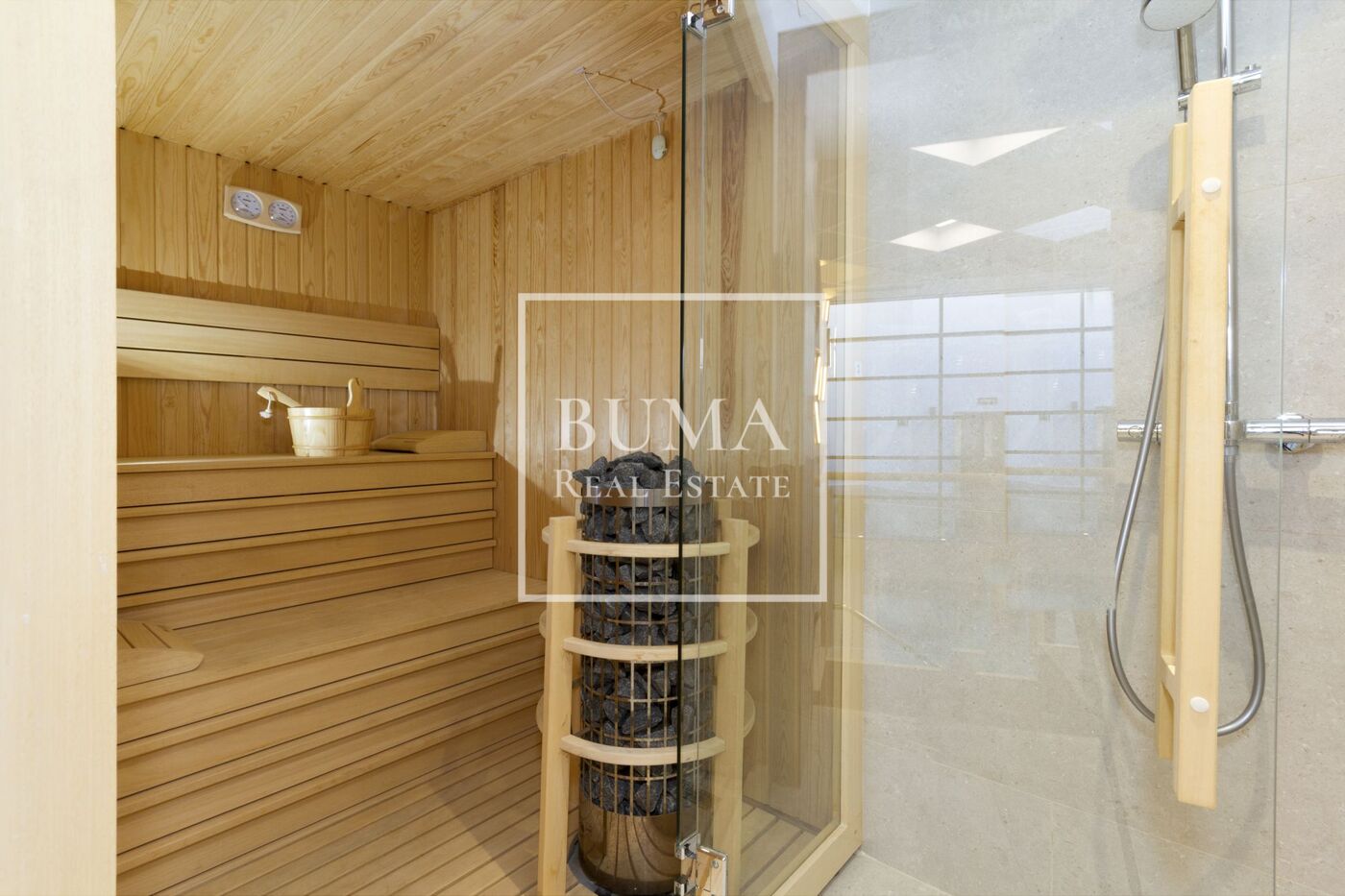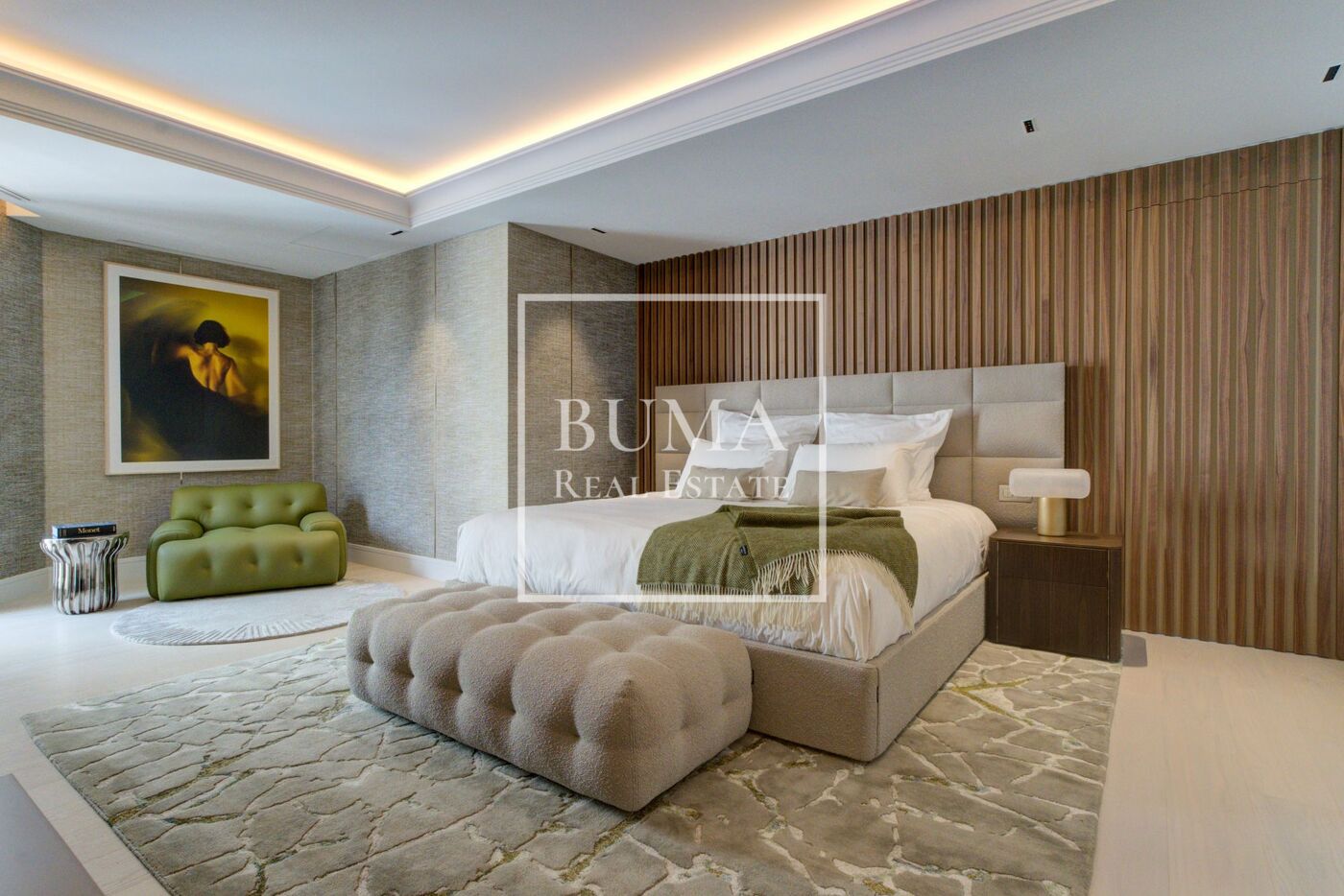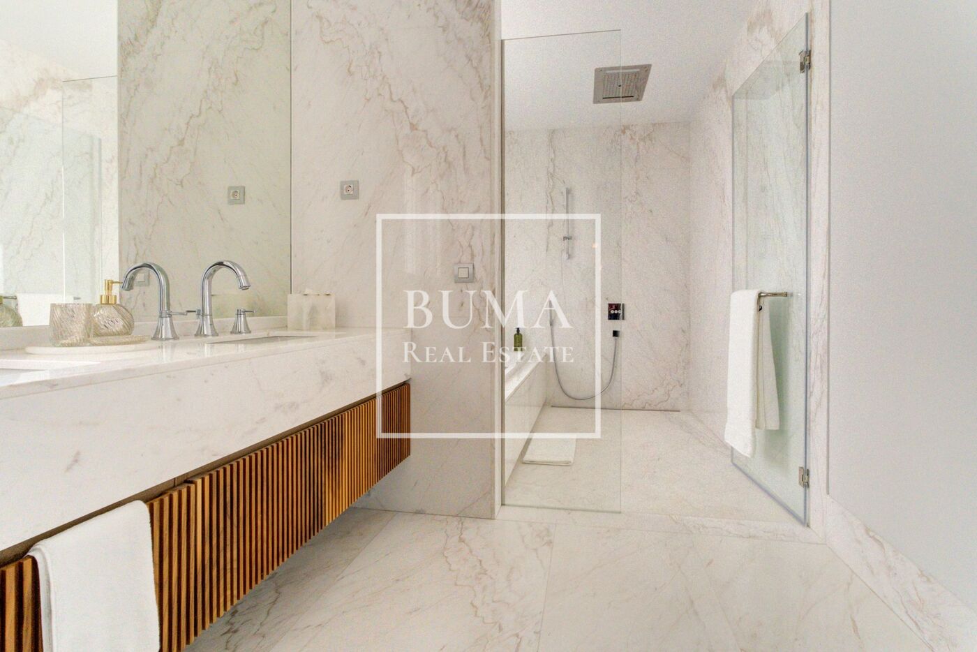 La zona de descanso se organiza en cuatro dormitorios, todos con baño en suite. La master suite cuenta con vestidor y generosas dimensiones. Además, la propiedad dispone de aseo de cortesía y zona de lavandería independiente.