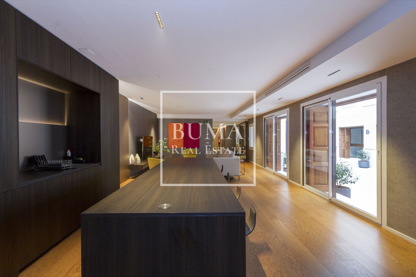 Dispone de una amplia zona social compuesta por salón y comedor, conectados con una moderna cocina con isla, totalmente equipada con electrodomésticos de alta gama. Desde esta zona se accede a una terraza privada de aproximadamente 55 m², un espacio versátil y bien integrado, ideal para uso diario o para reuniones.