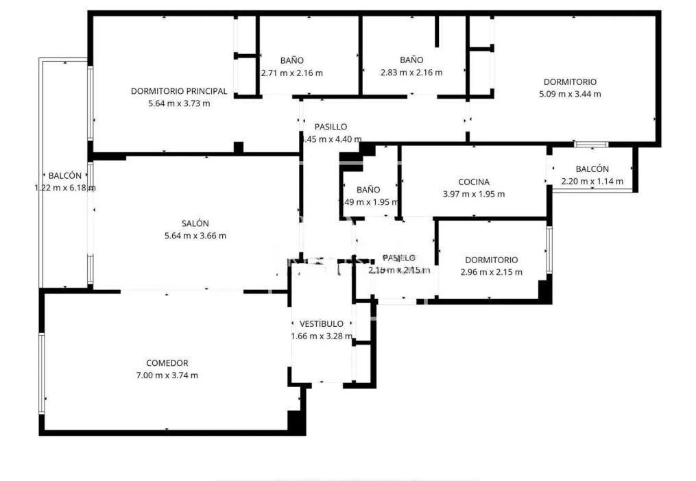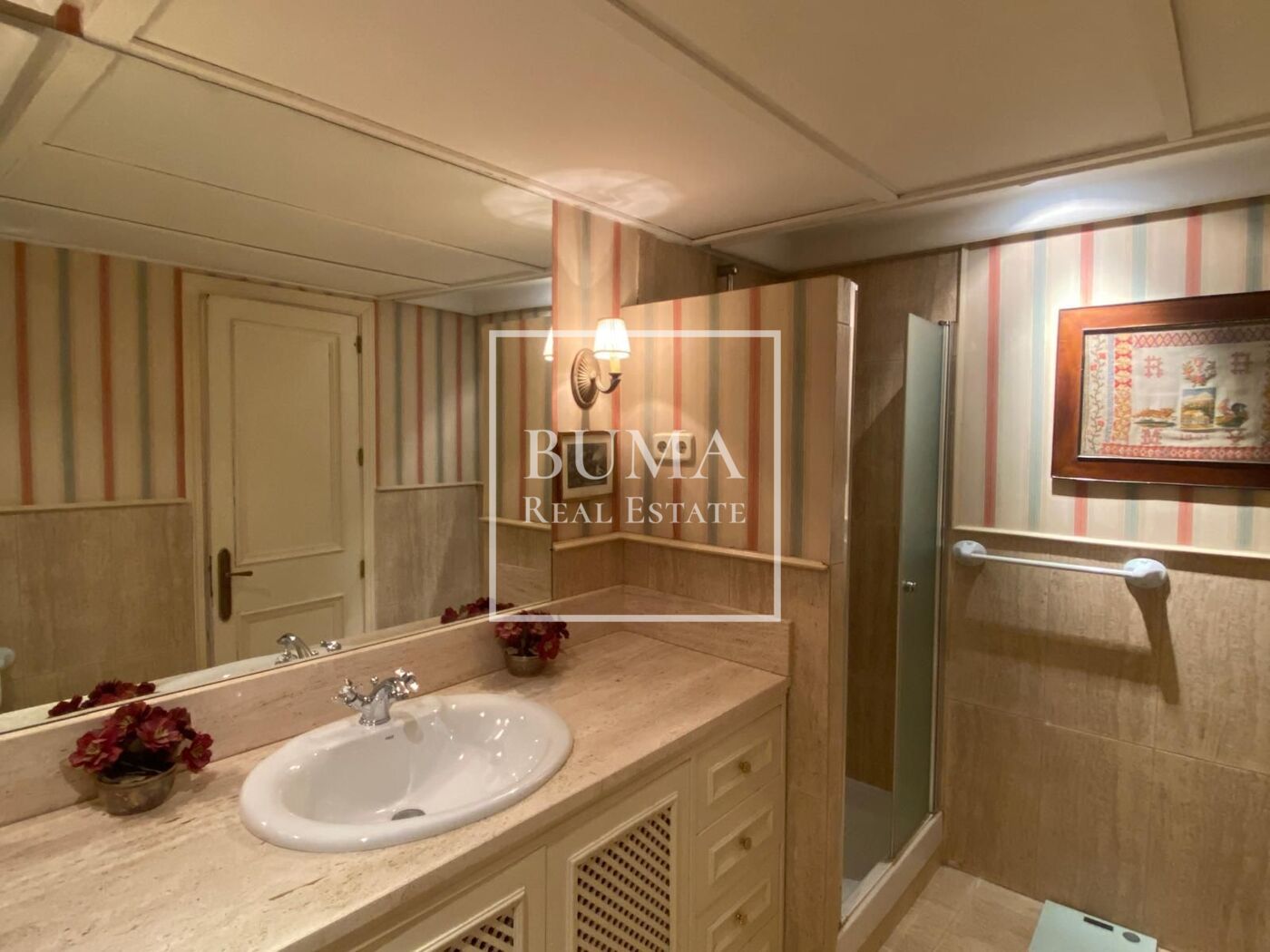 Actualmente la vivienda se distribuye en tres dormitorios y tres baños, aunque ofrece un gran potencial de redistribución, permitiendo configurar cuatro dormitorios y tres baños, adaptándose a diferentes necesidades familiares o de inversión. Cuenta con armarios empotrados, calefacción y aire acondicionado.