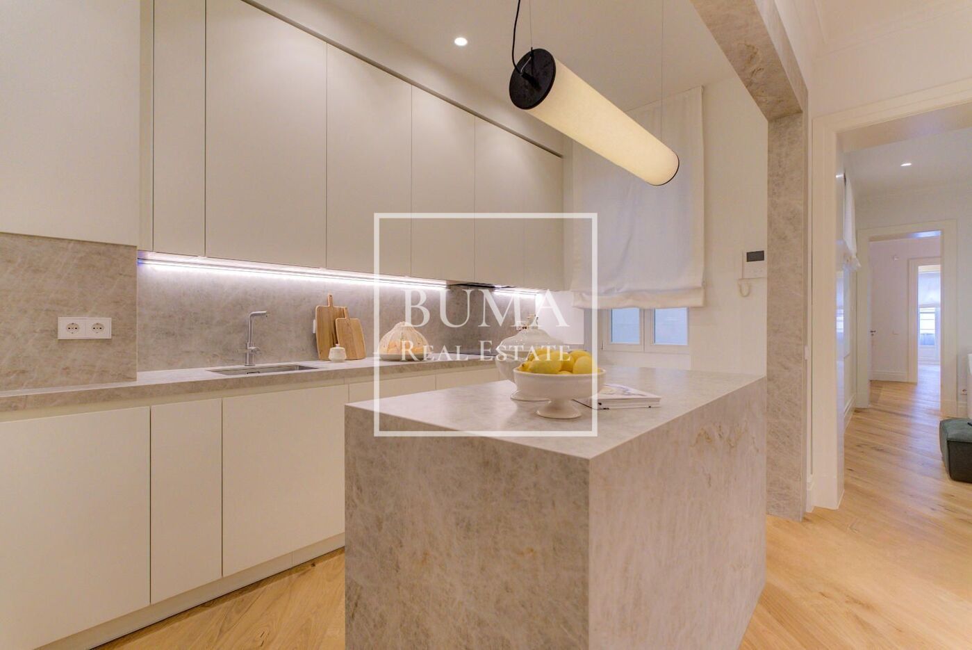 Ubicada en un edificio representativo construido en el año 1948 con fachada clásica y excelente portal, esta vivienda de 212 m2 ha sido completamente reformada utilizando las mejores calidades, destacando el suelo radiante frío y calor.