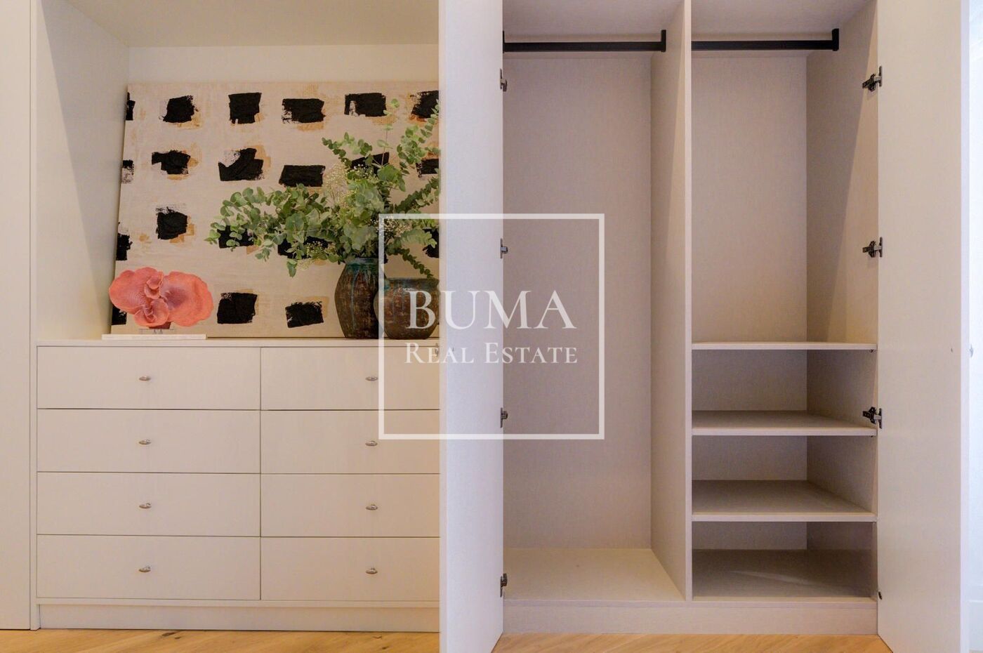 La zona de descanso tiene dos habitaciones de grandes dimensiones con sus cuartos de baño en suite. La principal destaca además por su amplio vestidor.