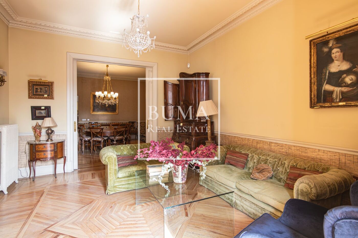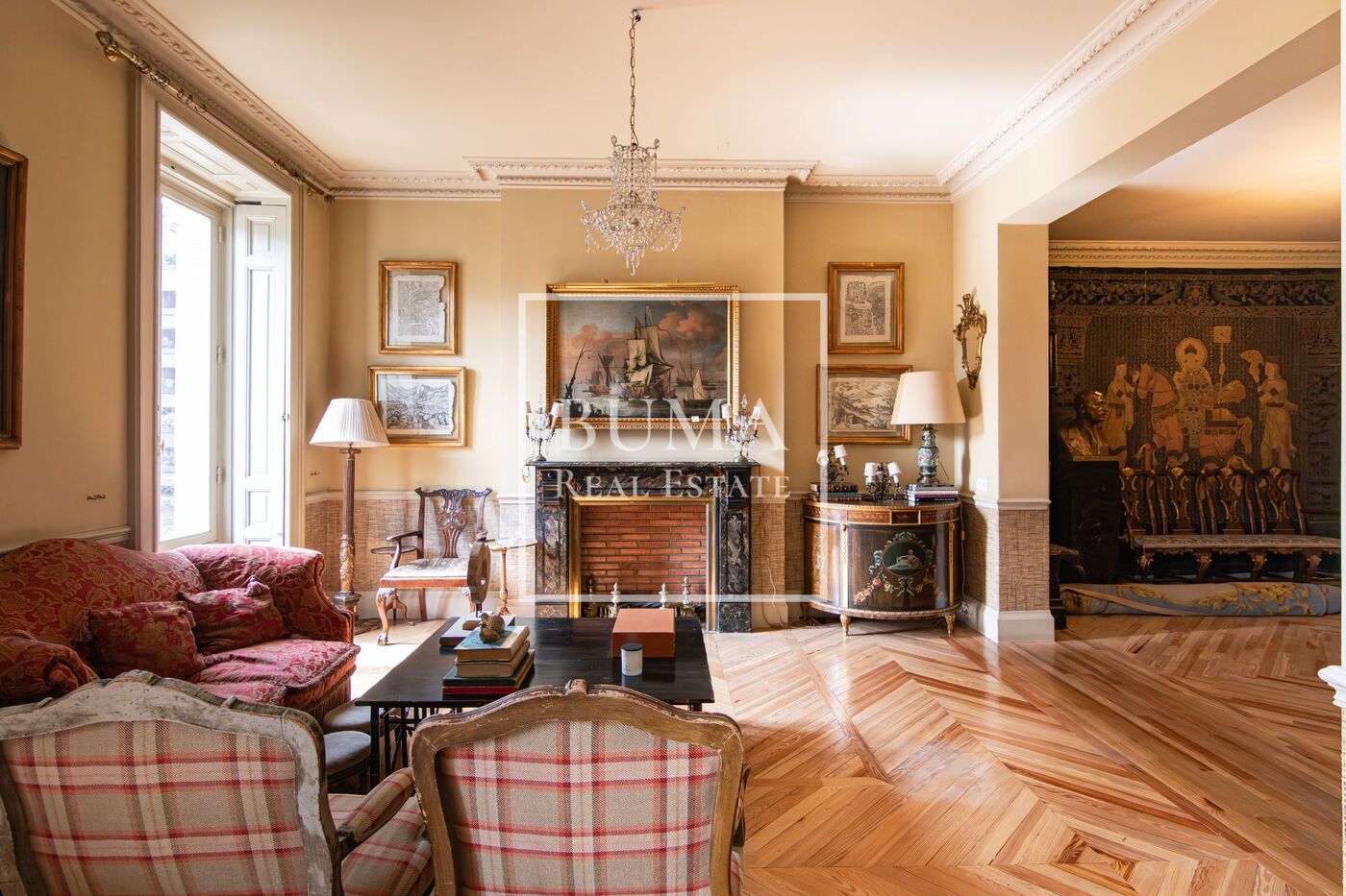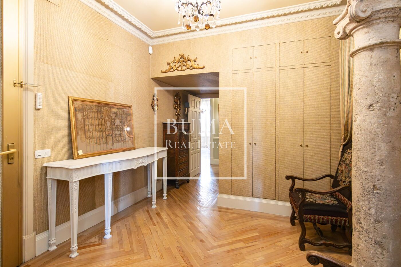 Ubicada en una de las calles más emblemáticas y prestigiosas del Barrio de Salamanca, esta magnífica propiedad se sitúa en un elegante edificio clásico de 1920 con entrada de carruajes, que conserva el carácter señorial y la arquitectura representativa de la zona.