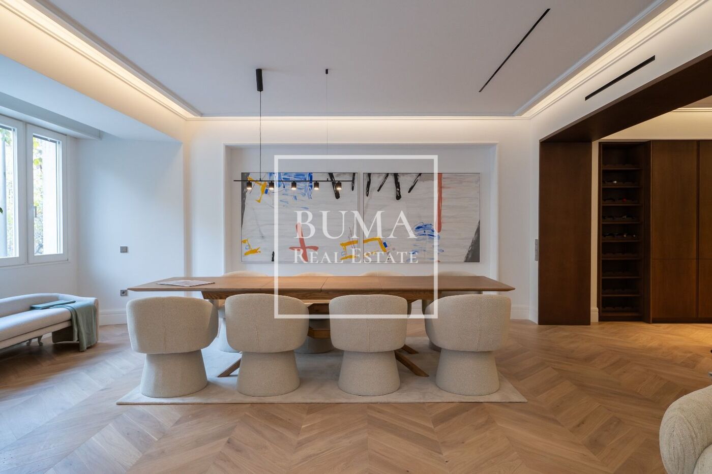 Exclusiva propiedad situada en la segunda planta de un prestigioso edificio residencial con una única vivienda por planta y una impresionante superficie de 501 m². La vivienda destaca por su abundante luz natural y por la cuidada atención a cada detalle.
