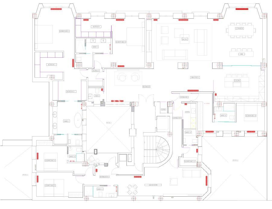 La distribución comienza con un amplio hall de entrada que da paso a las zonas sociales, compuestas por una cocina abierta, un comedor y un gran salón con un encantador mirador. En la zona privada se encuentran cinco amplios dormitorios, además de un dormitorio de servicio. El gran protagonista es la magnífica suite principal, que cuenta con un espacioso vestidor y un elegante baño doble de diseño.