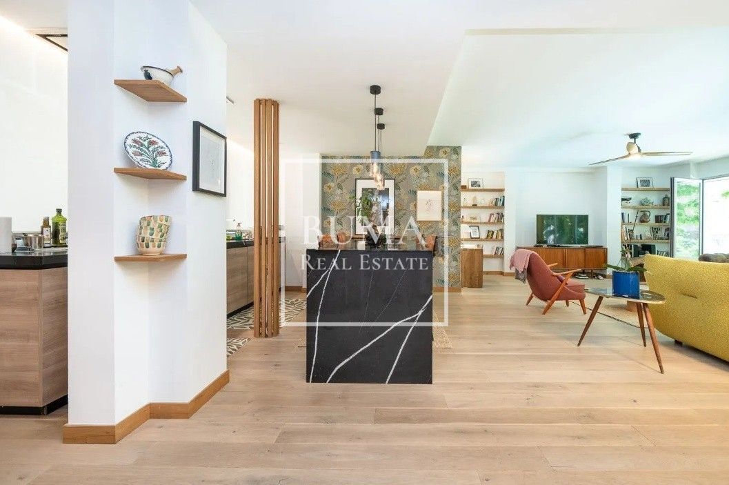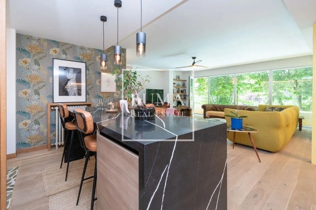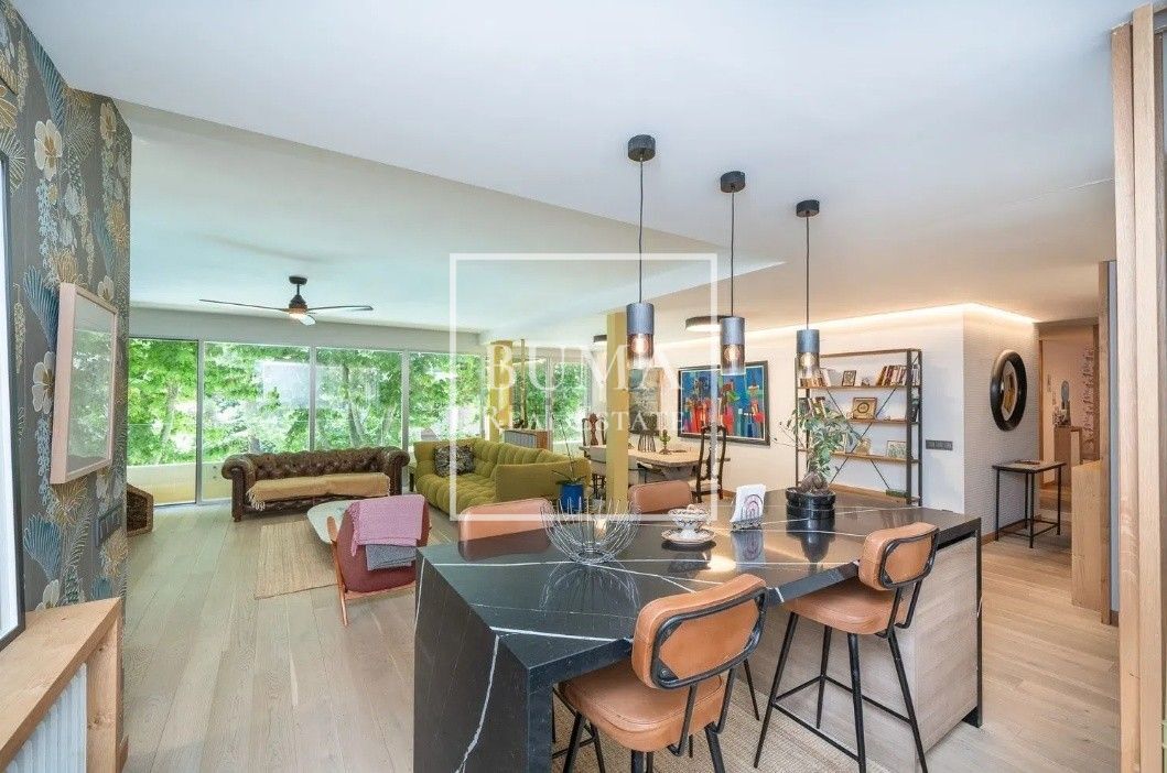 El amplio salón-comedor con grandes ventanales ofrece vistas abiertas y una conexión directa con el entorno verde que caracteriza a la zona, inundando la vivienda de luz natural durante todo el día. La cocina de concepto abierto, totalmente equipada con electrodomésticos de alta gama, se integra de manera armoniosa en la zona social, creando un espacio ideal tanto para el día a día como para disfrutar con invitados.