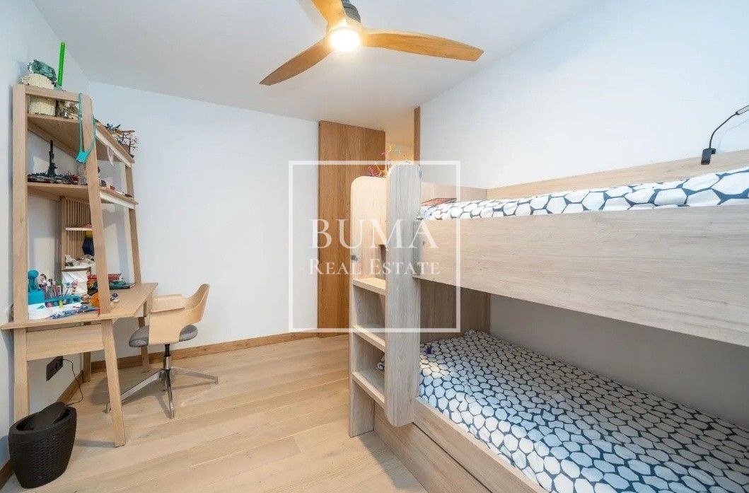 La zona de descanso incluye tres dormitorios, dos de ellos con baño en suite, y un tercer baño completo para invitados. Existe además la posibilidad de habilitar un cuarto dormitorio o despacho independiente, adaptando la vivienda a las necesidades de cada familia.