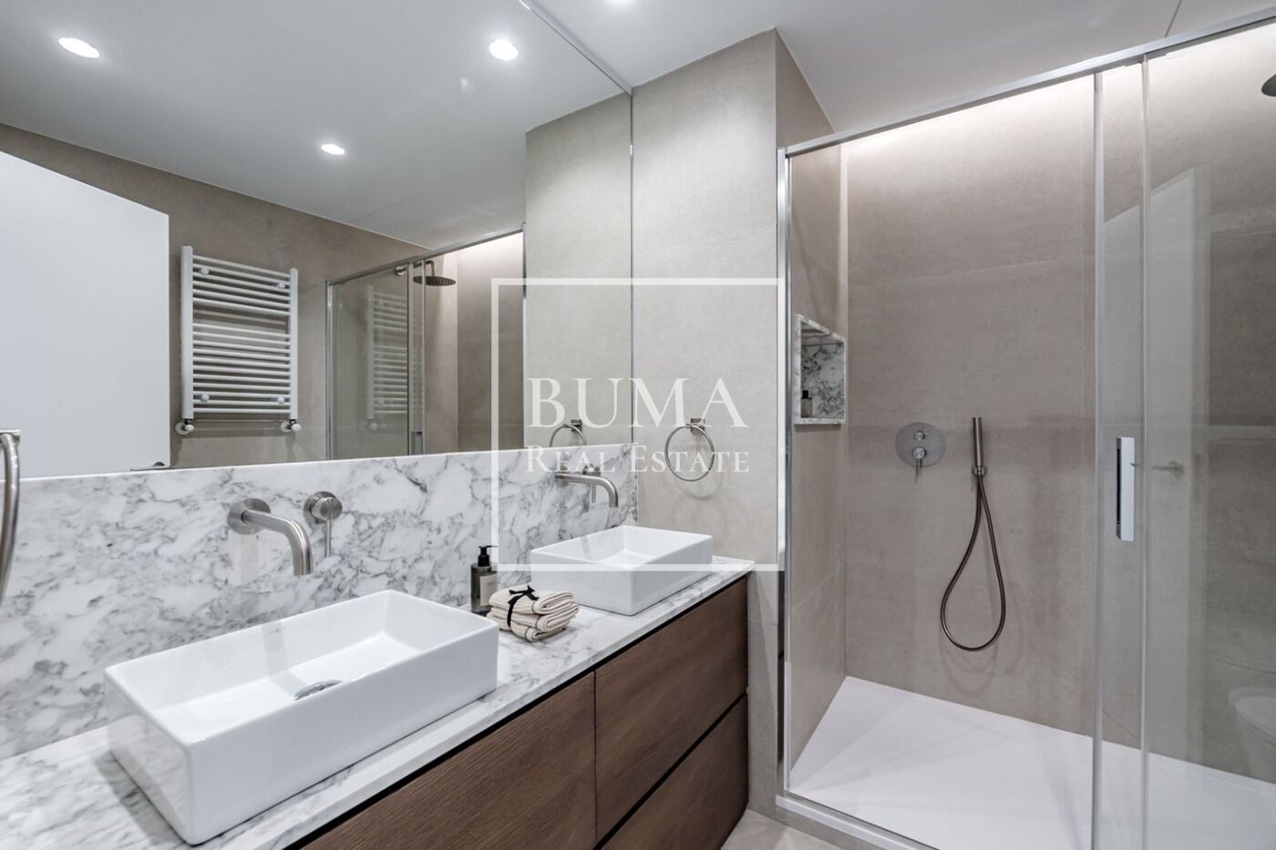 La zona de descanso ofrece dos dormitorios de buen tamaño, ambos con baño en suite, garantizando comodidad y privacidad. La vivienda se completa con un aseo de invitados.
