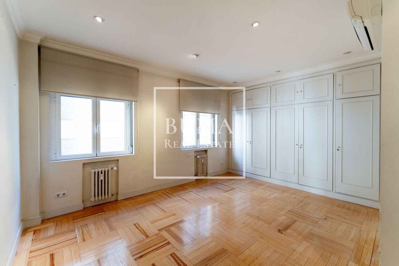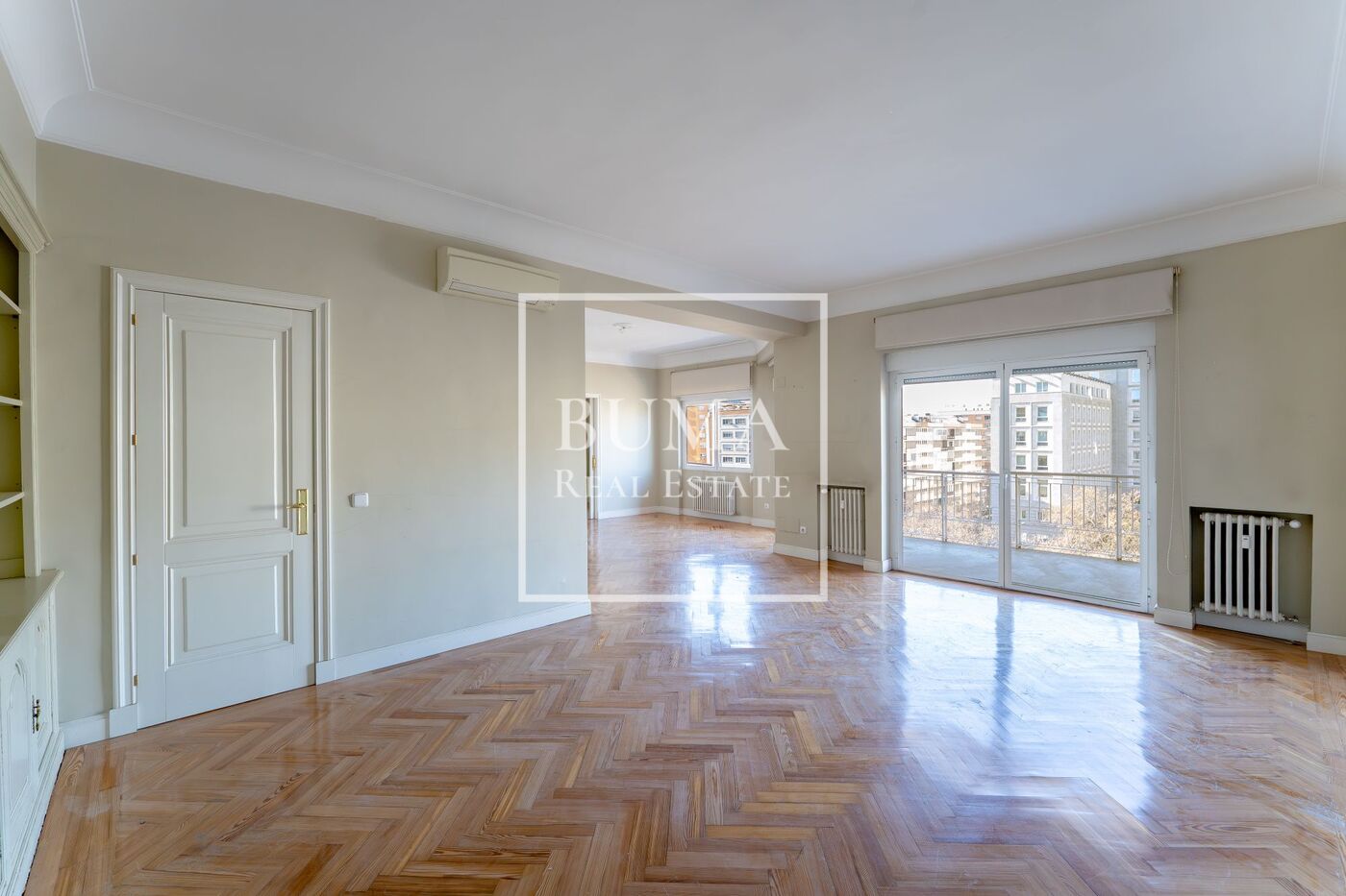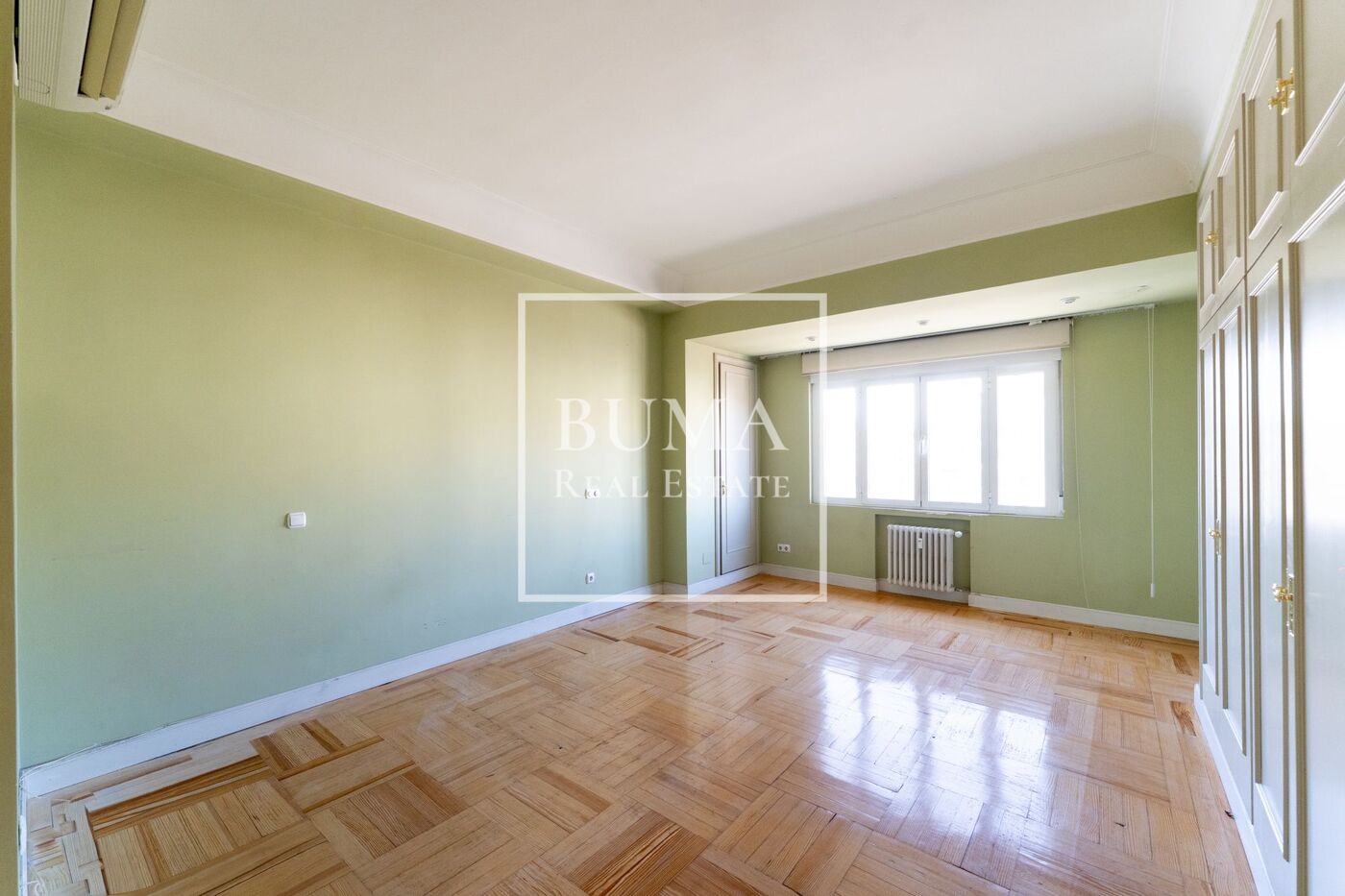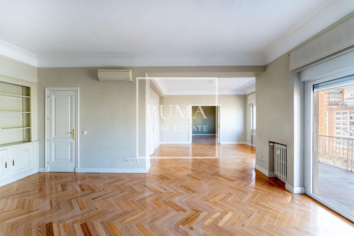 Todas las estancias de la vivienda disponen de abundante luz natural, techos altos, aire acondicionado y armarios empotrados. El edificio cuenta además con plaza de parking en la finca y servicio de portería de lunes a domingo, lo que aporta un extra de comodidad y seguridad.