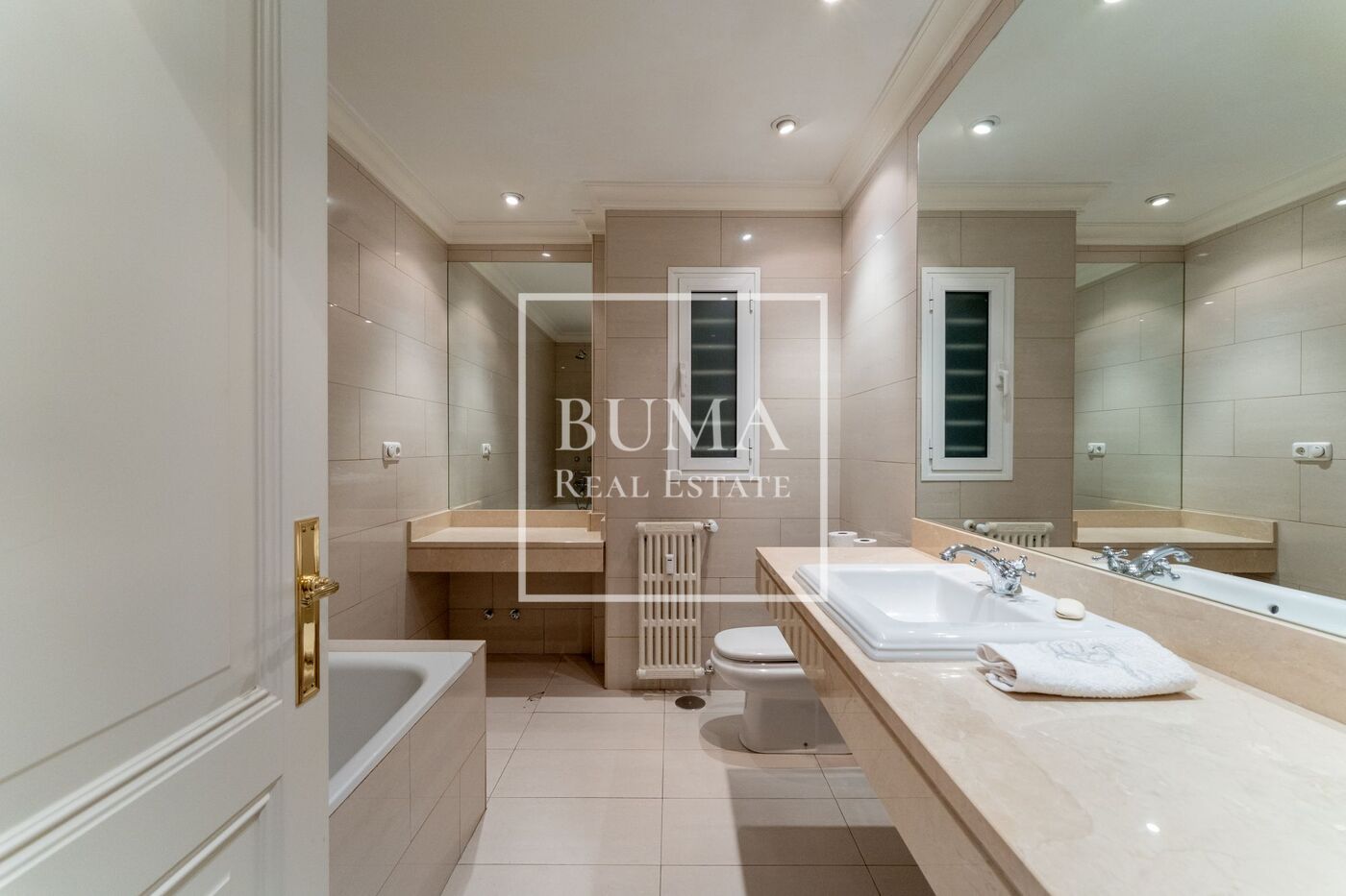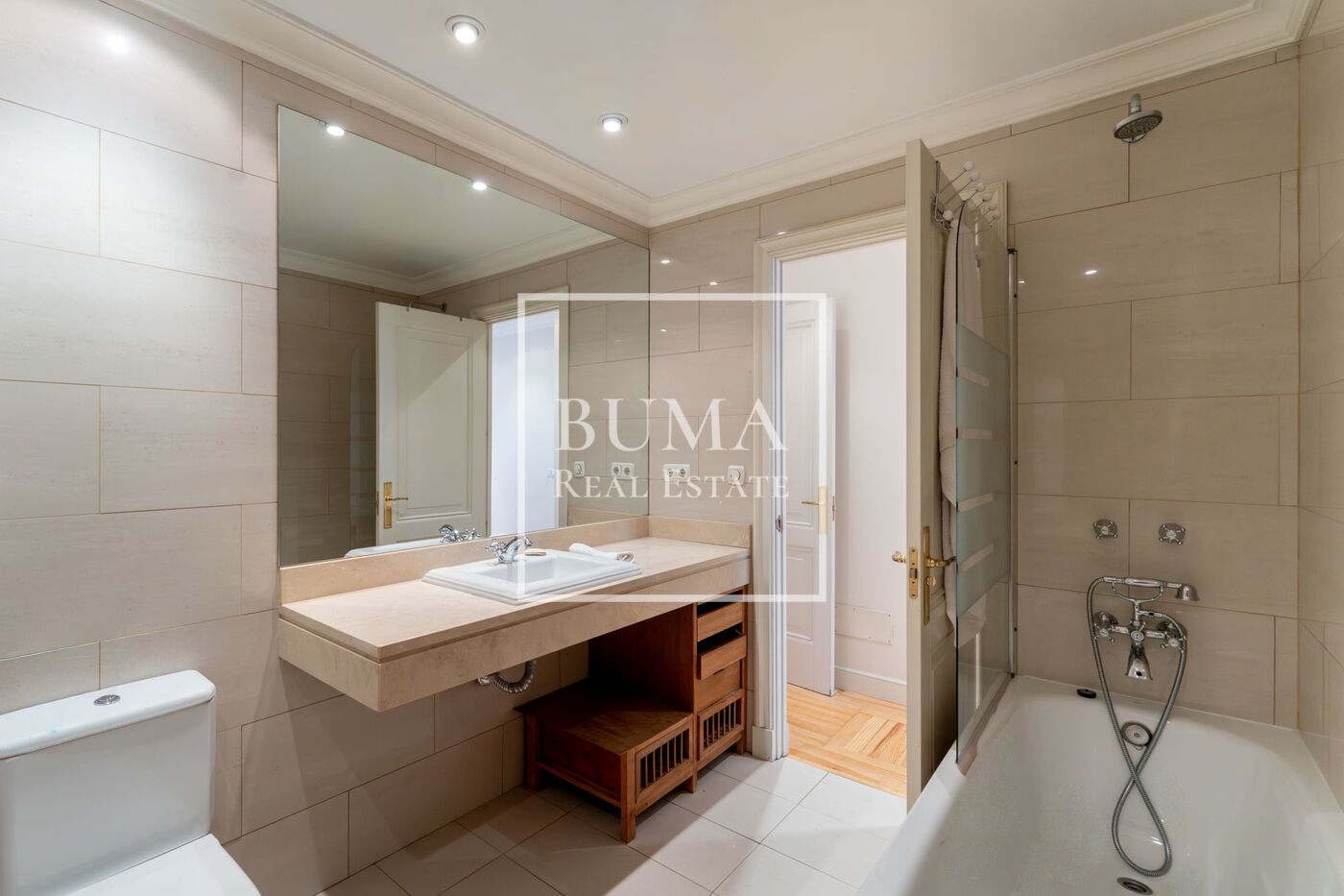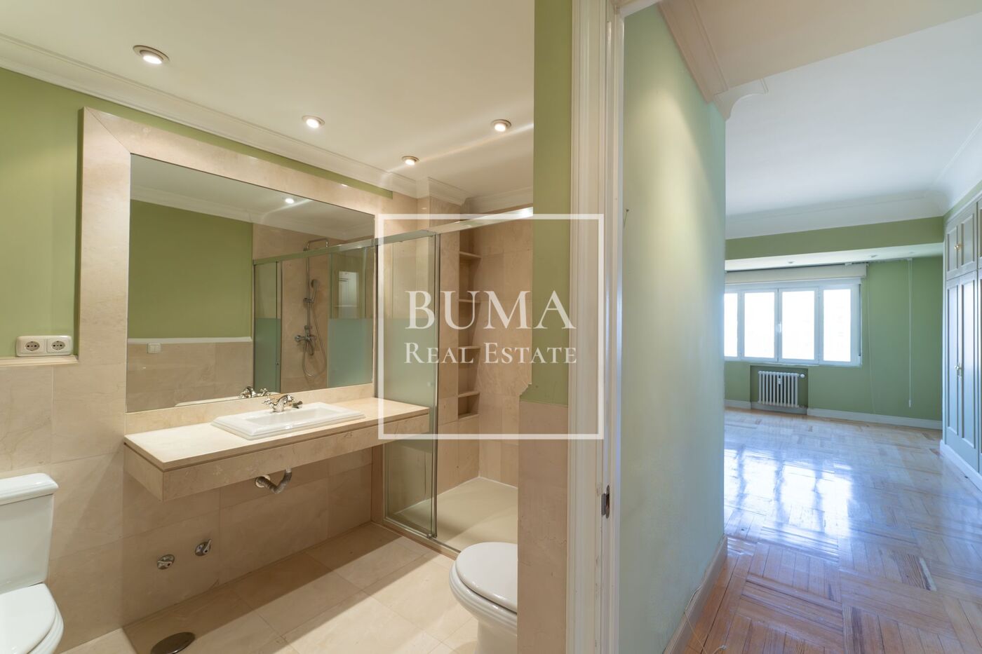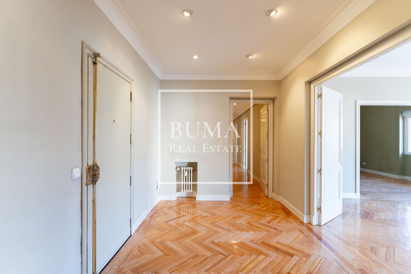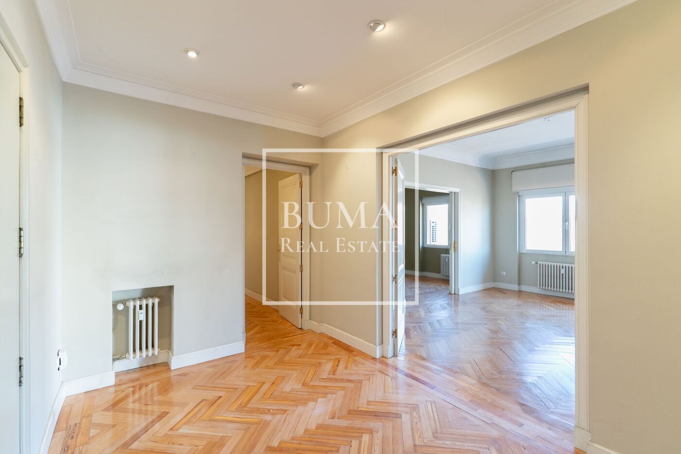 Todas las estancias de la vivienda disponen de abundante luz natural, techos altos, aire acondicionado y armarios empotrados. El edificio cuenta además con plaza de parking en la finca y servicio de portería de lunes a domingo, lo que aporta un extra de comodidad y seguridad.