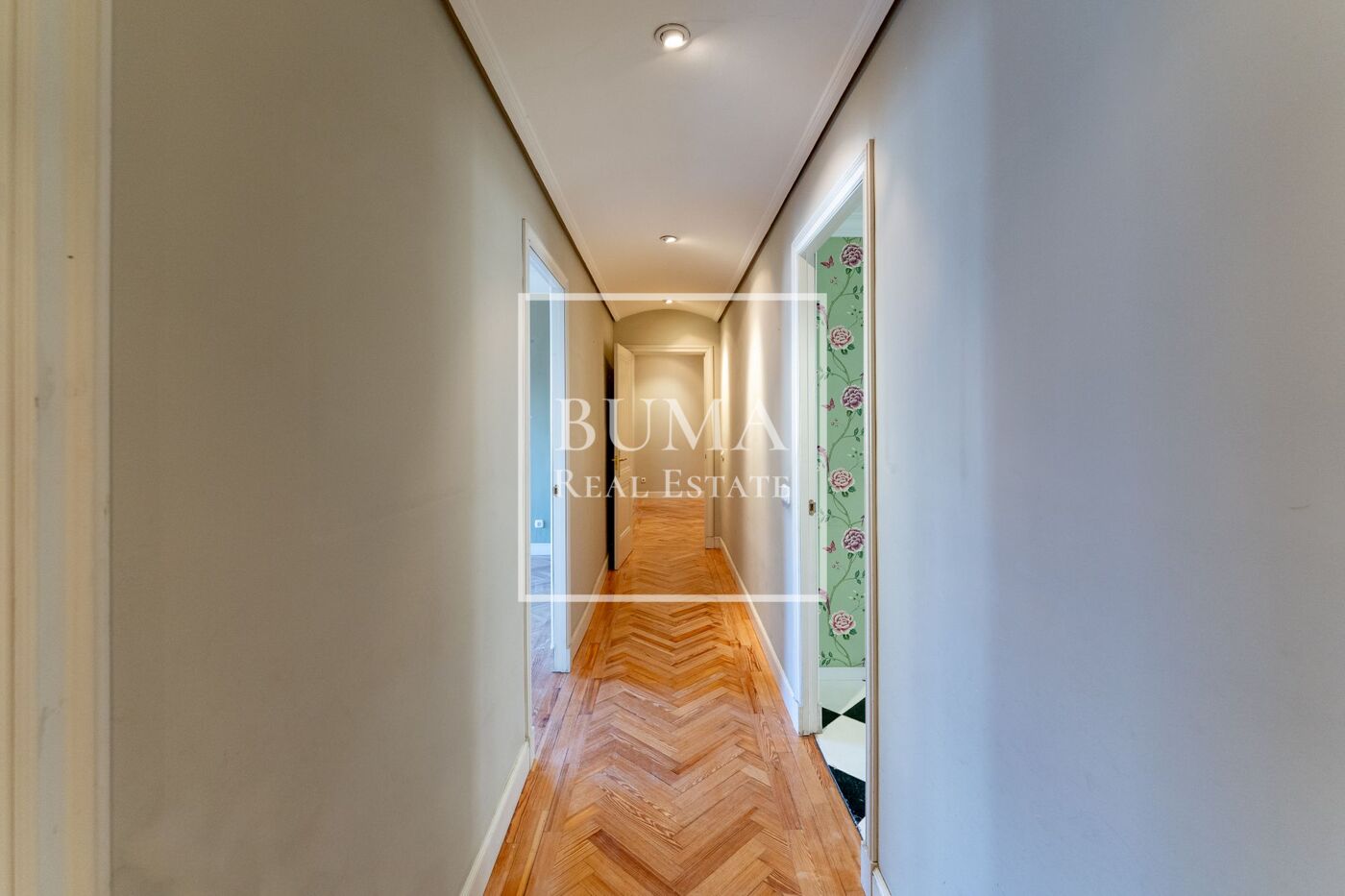 A la izquierda del hall se accede a un amplio pasillo que distribuye la zona de noche, compuesta por tres dormitorios de muy buen tamaño, dos de ellos en suite, existiendo además la posibilidad de habilitar un cuarto dormitorio en la zona de estar, próximo a la zona de descanso. A mano derecha del pasillo se encuentra un dormitorio amplio y muy luminoso, con armarios empotrados de suelo a techo; frente a este se sitúa un cuarto de baño completo de generosas dimensiones. En el mismo tramo del pasillo se ubica otro dormitorio en suite, también de buen tamaño, con armarios empotrados de suelo a techo y un baño completo amplio. Al final del pasillo se encuentra la suite principal, de grandes dimensiones, con numerosos armarios empotrados de suelo a techo, gran amplitud y un cuarto de baño completo de gran tamaño.
