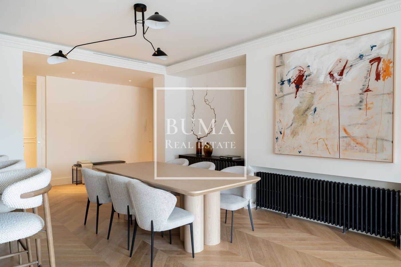 Exclusivo piso recién reformado de 291 m² ubicado en el prestigioso barrio de los Jerónimos, una de las zonas más exclusivas de Madrid. Situado en la segunda planta, la vivienda cuenta con una excelente orientación sur, lo que garantiza una abundante luz natural durante todo el día.