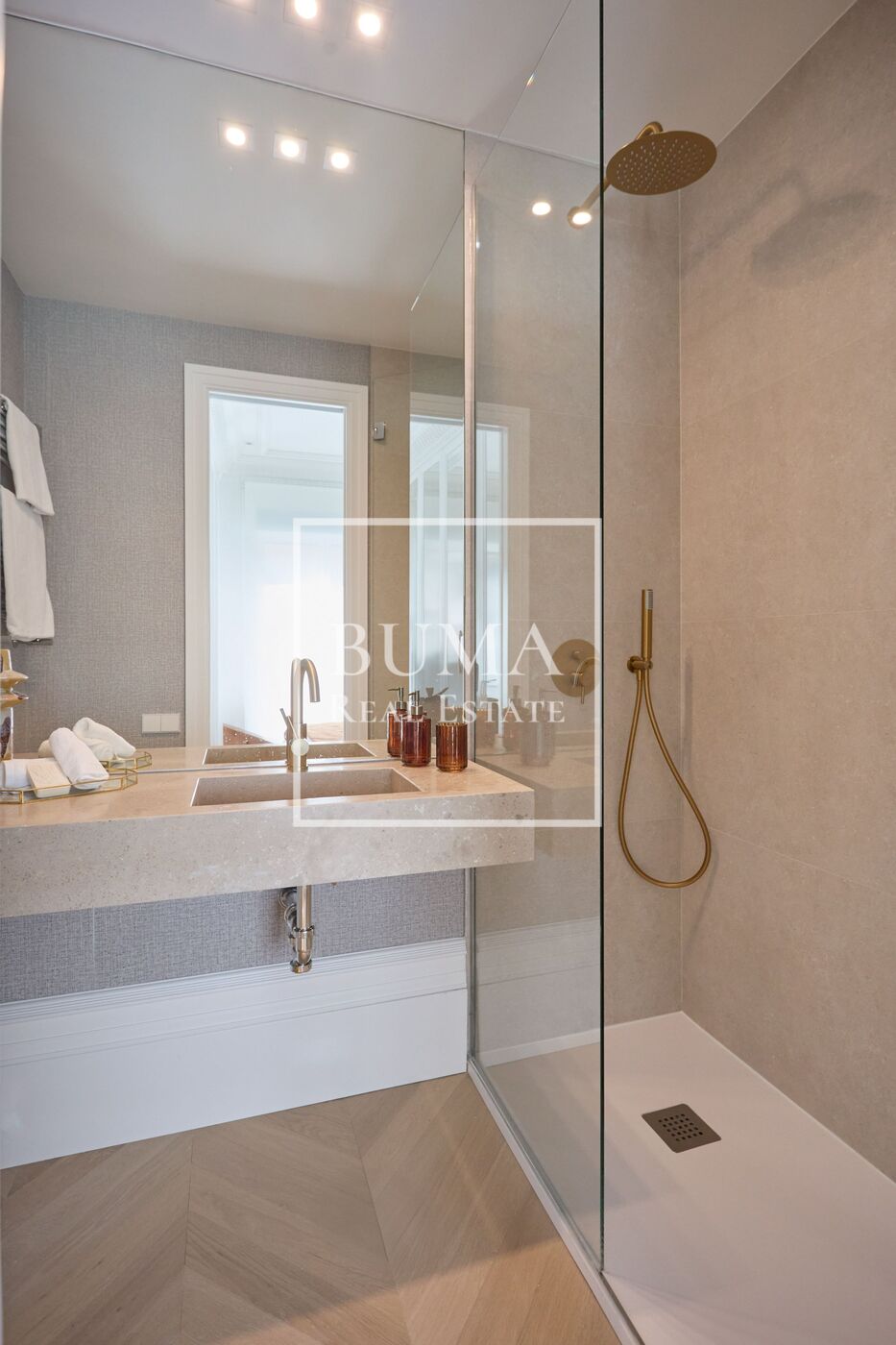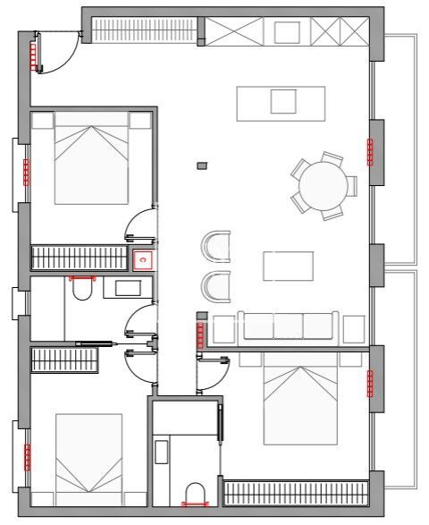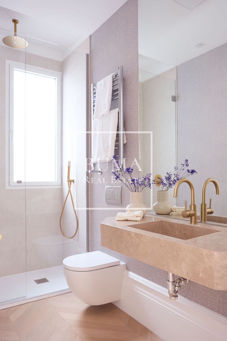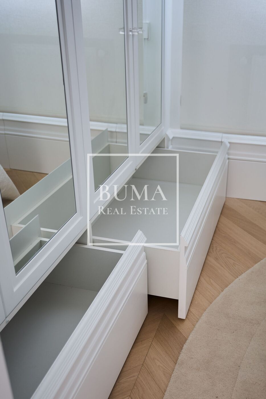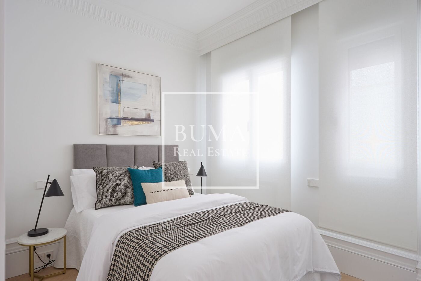 La vivienda dispone de cuatro balcones a la calle y techos de 3 metros de altura. La reforma se ha realizado cuidando cada detalle: molduras originales, suelos de madera, aire acondicionado por conductos, iluminación indirecta en el pasillo y armarios empotrados.