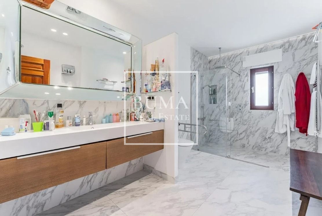 La planta principal alberga la zona social y privada de la casa. Un generoso recibidor da paso a los distintos ambientes: un amplio salón y comedor principal, espacios luminosos y abiertos con salida directa al jardín, ideales tanto para el día a día como para celebraciones. La cocina, de grandes dimensiones, cuenta con office, zonas auxiliares y conexión directa con un comedor más informal orientado al exterior. En esta misma planta se sitúa la magnífica suite principal, concebida como un auténtico refugio privado, con zona de estar, dos vestidores y dos baños completos. Además, dispone de aseo de cortesía y una completa zona de servicio con dormitorios, baño y áreas de lavandería y apoyo.