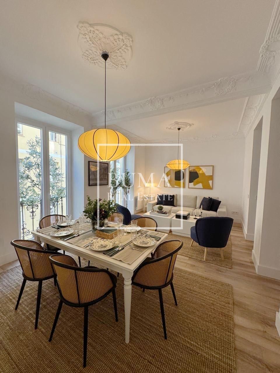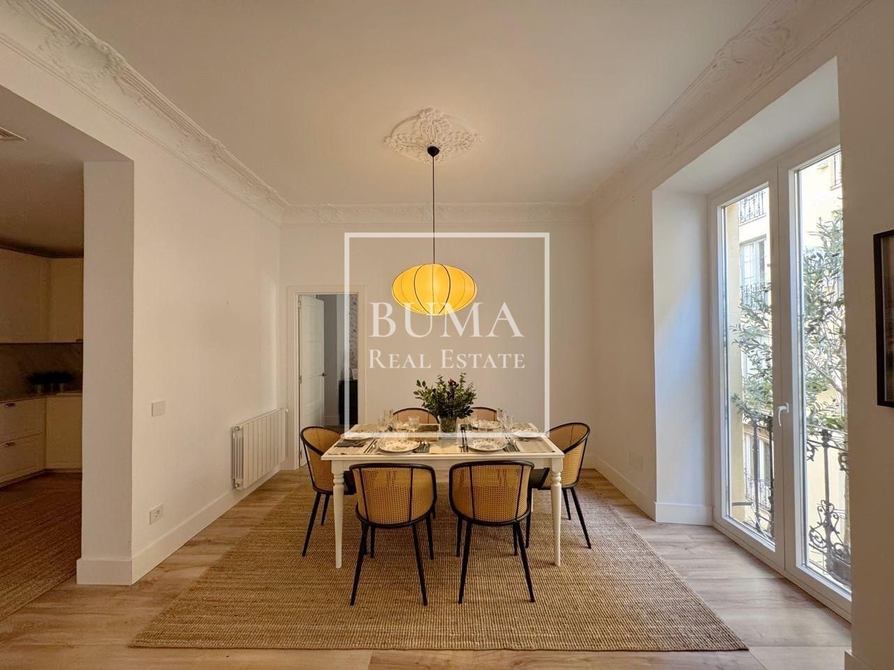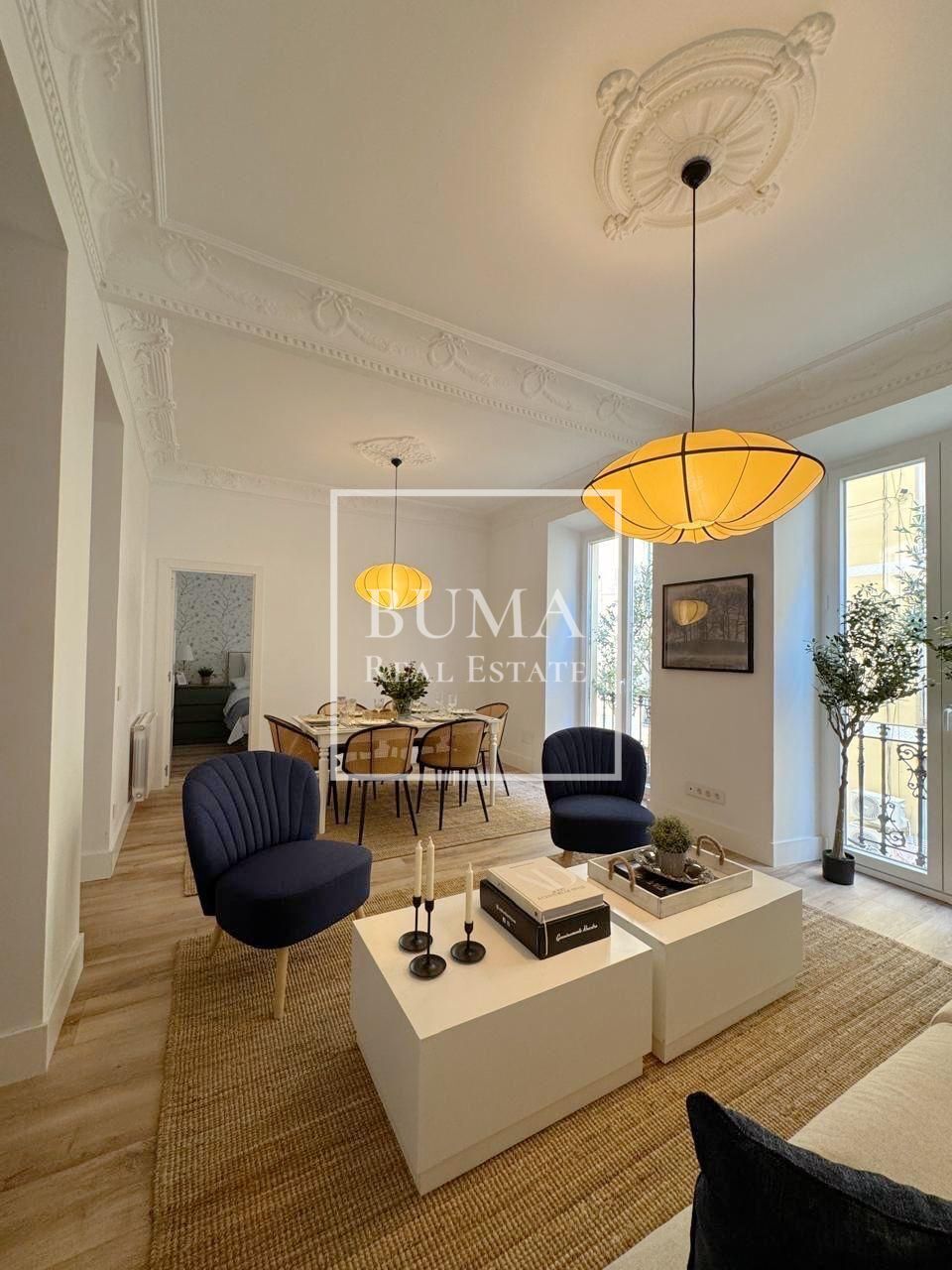 Ubicada en la codiciada Calle Lagasca, en pleno Barrio de Salamanca de Madrid, esta distinguida vivienda ha sido completamente renovada con un cuidado proyecto de interiorismo, ofreciendo una combinación perfecta entre elegancia clásica y confort contemporáneo.