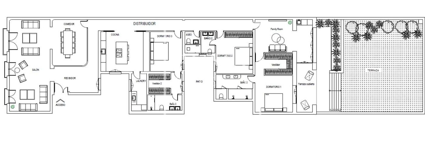 La zona de descanso incluye tres dormitorios en suite, un aseo de cortesía, una sala de estar o TV room con acceso directo a la terraza y un comedor informal con kitchenette. Todo el conjunto ha sido diseñado con un alto nivel de confort, incorporando tecnología domótica y sistema de climatización por aerotermia.
